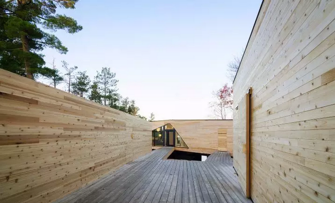 選用的赤松芬蘭木平臺(tái)輕松的將住宅各部分連接到一起,并懸浮在山坡上,美觀的同時(shí)也非常耐用,在野外環(huán)境也非常安全可靠!