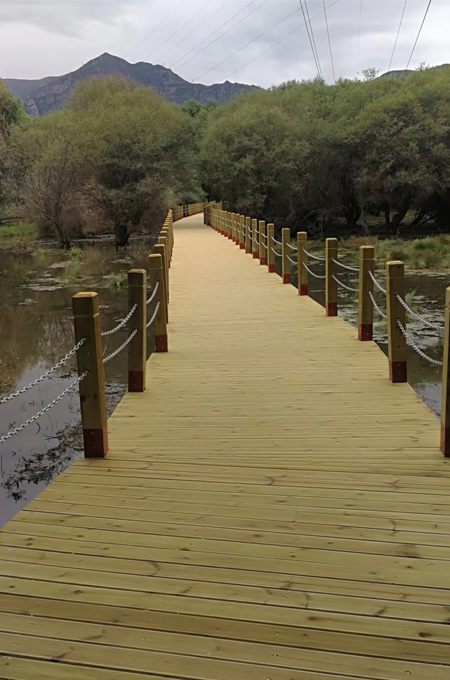 木地板再戶外使用,除了要滿足足夠的抗壓能力,能夠經(jīng)得住人來人往的踩踏,還要面對日曬雨淋、真菌蟲蛀。普通的木材往往不能長久使用就會出現(xiàn)各種問題:發(fā)霉、開裂、腐爛、蟲蛀,木地板壽命短,甚至引發(fā)安全問題。而使用防腐木地板則完美的解決了這些問題。防腐木不怕潮濕環(huán)境,能夠有效抵抗真菌和蟲蛀,作為木地板使用壽命更長,更加安全可靠。