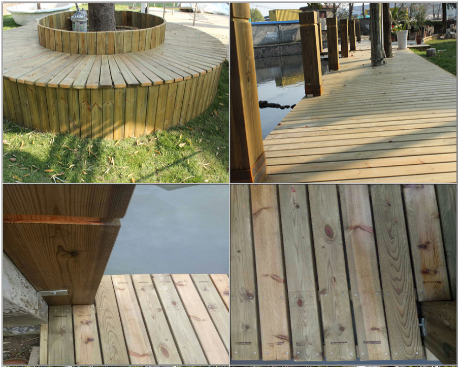 具有很好的結(jié)構(gòu)性能,因為它木質(zhì)緊密,含脂量低,木材纖維紋理清晰美觀、木節(jié)小、比大部分軟木樹種強度高。芬蘭防腐木是經(jīng)真空脫脂后,在密閉的高壓倉中灌注水溶性防腐劑CCA,使藥汁浸入木材的深層細胞從而使木材具有抗真菌、防腐爛、防白蟻和其他寄生蟲的功能,且密度高、強度高、握釘力好、紋理清晰及具裝飾效果。