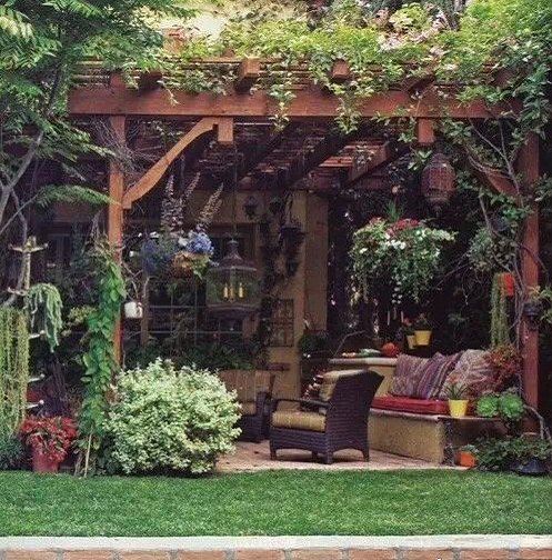上,人抬頭仰視,能見天空,而庭院造景,不僅僅是天空,也有更多需要表達之物。廊架、雨棚、涼亭遮蔽,不僅僅是對天氣的選擇,也是人對自然的敬畏,庭院花園的最終目的,是達到能親近自然,又不完全暴露于自然,能有放松遮蔽的環(huán)境。