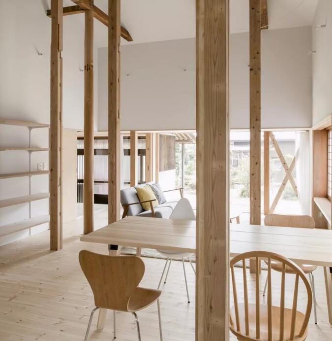 像這樣的改造項目是難得的機會,幫助我們了解日式木屋結(jié)構(gòu),并且將現(xiàn)代的結(jié)構(gòu)理念結(jié)合。將木構(gòu)作為設(shè)計組件對待,拼接出簡潔純凈的住宅主體。
