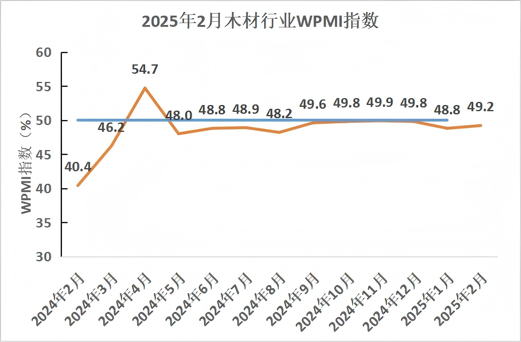 2025年2月木材行業(yè)采購經(jīng)理指數(shù)(WPMI)運行情況